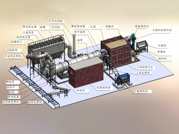 The feeding end of the cylinder is equipped with a hot air furnace device such as fuel oil, gas, and coal for heating materials.
